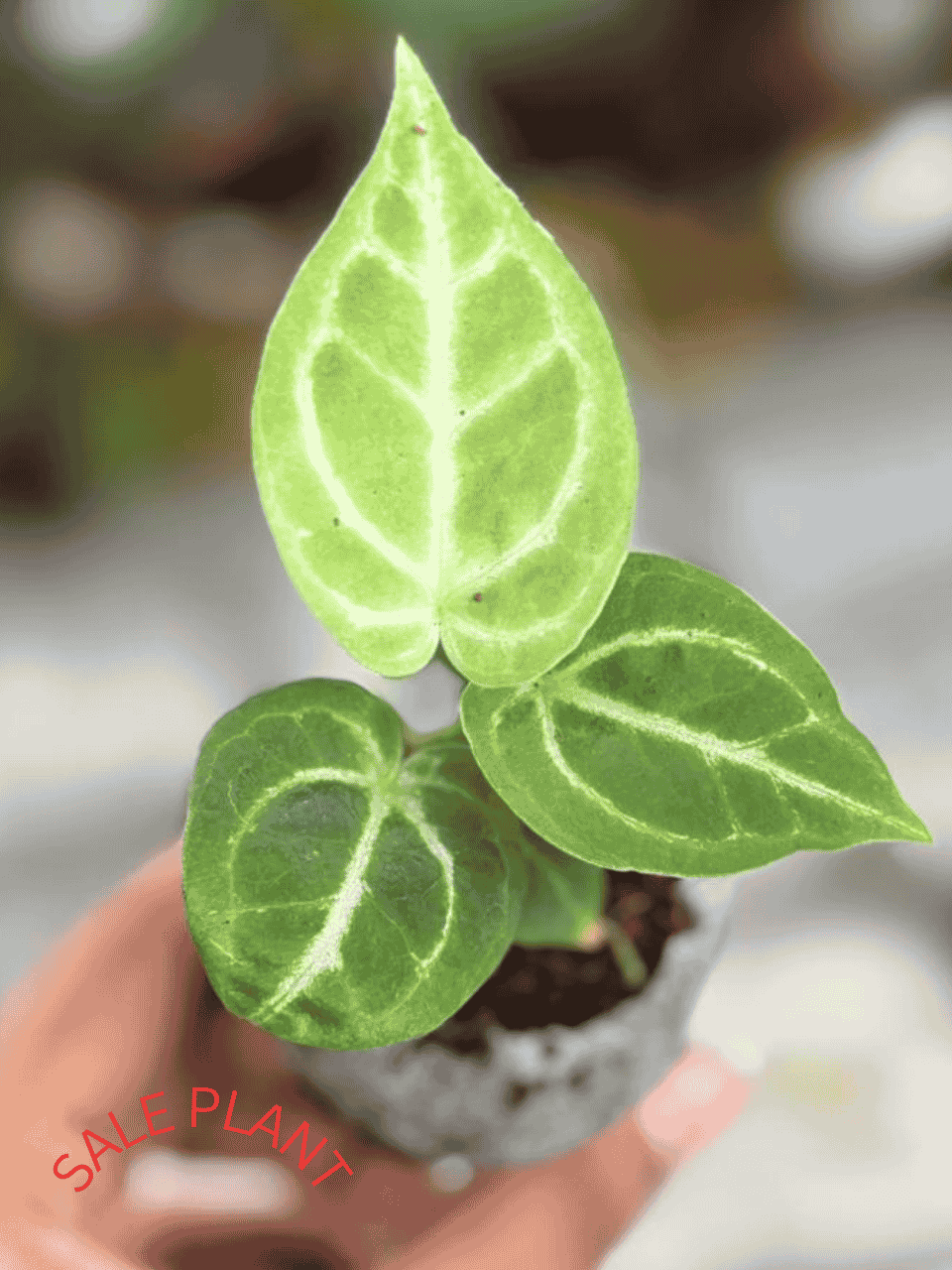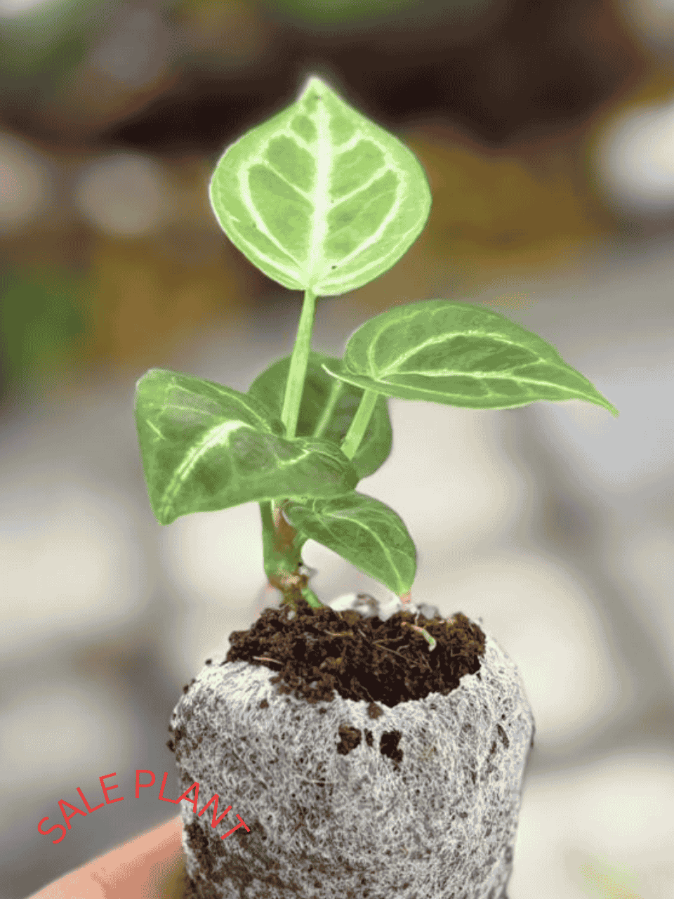 A healthy ANTHURIUMDORAYAKI ORIGINAL PLANT IN JIFFY BAG, SIZE 8-12 CM